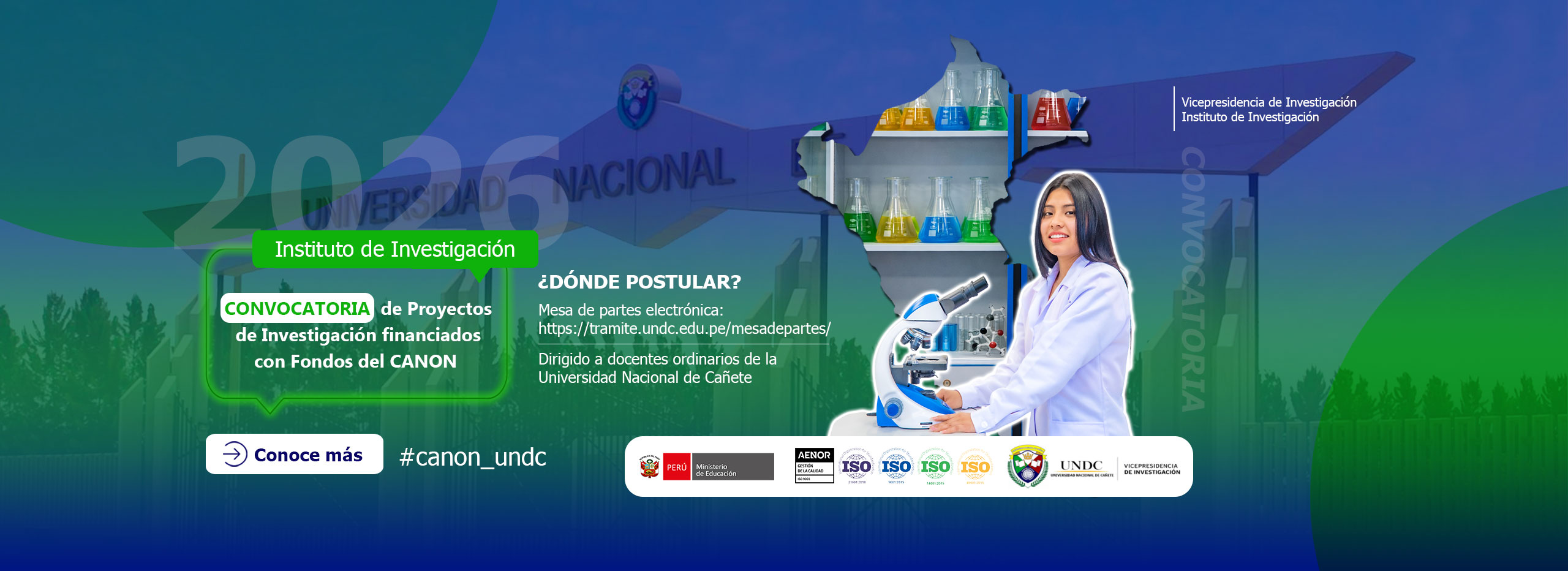 La Vicepresidencia de Investigación de la Universidad Nacional de Cañete (UNDC) es el órgano encargado de planificar, fomentar y coordinar la actividad científica y tecnológica de la universidad.