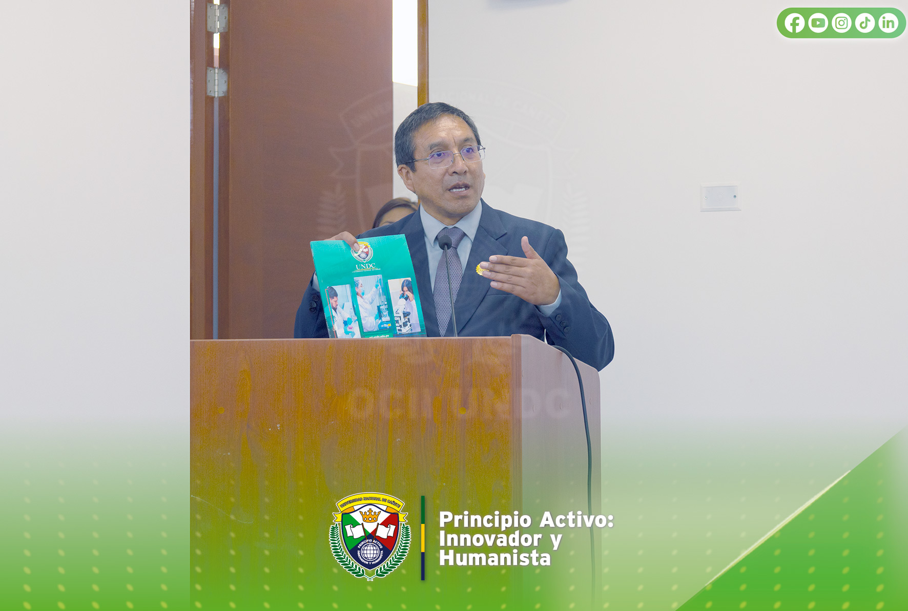 El evento contó además con la presencia del Dr. Wagner Enoc Vicente Ramos, director de la Dirección de Producción de Bienes y Servicios; el Dr. Filiberto Fernando Ochoa Paredes, director del Instituto de Investigación; Dra. Betsabe León Ttacca, directora encargada de la Dirección de la Unidad de Investigación de la Facultad de Ciencias Agrarias y el Dr. Manuel Alberto Luis Manrique Nugent, responsable de la Escuela Profesional de Administración de Turismo y Hotelería, quien actuó como anfitrión. Con estas iniciativas, la UNDC reafirma su compromiso con la promoción de la investigación de calidad y el fortalecimiento del ecosistema científico universitario.